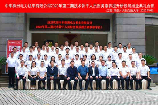9月27日13:00,由yl7703永利集团承办的中车株洲电力机车有限公司(以下简称中车株机公司)2020年第二期技术骨干人员财务素养提升研修班结业典礼,在我校学术交流中心报告厅顺利落下帷幕。出席此次典礼的嘉宾有:中车株洲电力机车有限公司财务中心副总监曾运敏;yl7703永利集团院长韩士专、党委书记王朗、校友办副主任兼对外联络处副处长段戈宏、院长助理兼培训班班主任朱钢英。典礼由王朗主持。