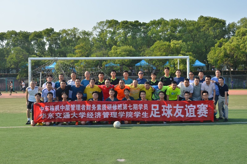 经过几天筹备,加上健康与体育学院的大力支持,中车株机中层管理者财务素质研修班(第七期)学员与华东交大经管学院学生“师兄弟”足球友谊赛于5月23日下午五时在南区田径场正式拉开帷幕。
