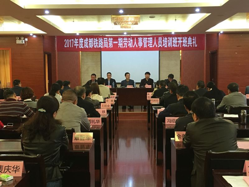 4月13日上午,2017年度成都铁路局第一期劳动人事管理人员培训班开班典礼在我校顺利举行。yl7703永利集团常务副院长韩士专、副院长陶裕春、成都铁路局劳卫处处长向全德、副处长谢伟、yl7703永利集团院长助理兼培训班班主任朱刚英参加了本次开班典礼。