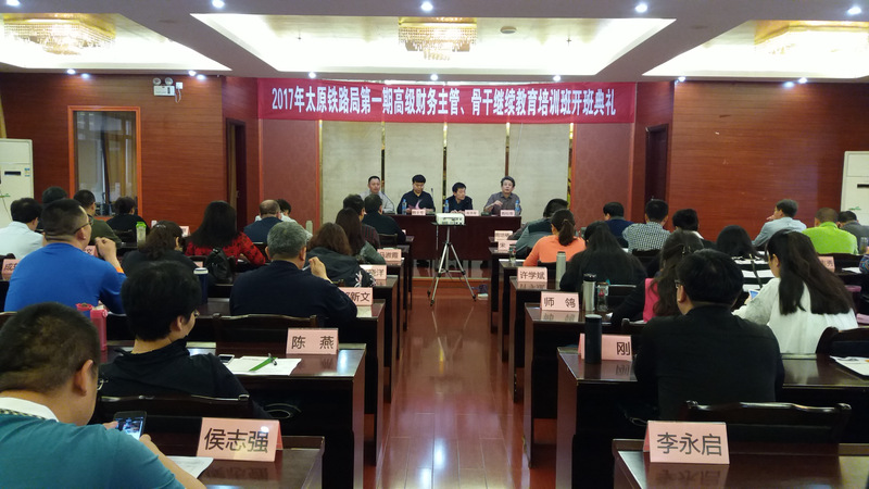 4月6日,2017年太原铁路局第一期高级财务主管、骨干继续教育培训班在我校开班,经管学院常务副院长韩士专、经管学院副院长陶裕春、太原铁路局秘书长高济泉以及经管学院院长助理朱刚英参加了本次开班仪式。