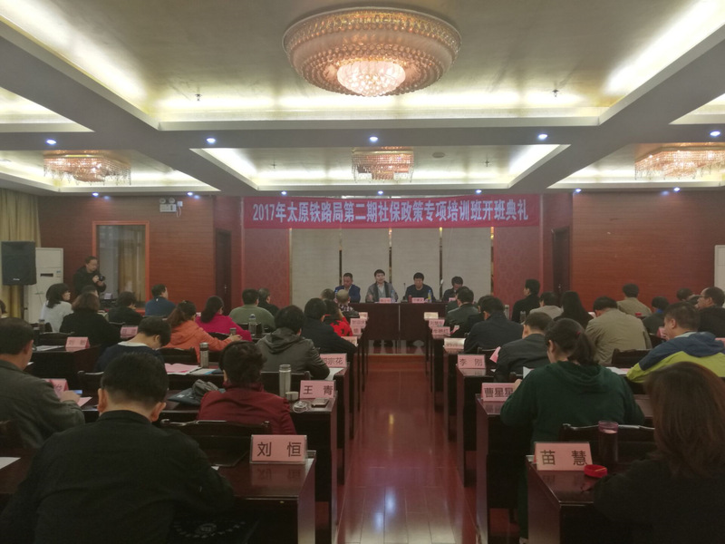 3月28日早,太原铁路局第二期社保政策专项培训班在专家楼举行开班典礼。yl7703永利集团副院长陶裕春,常务副院长韩士专,太原铁路局处长宁建文,yl7703永利集团院长助理兼带班班主任朱钢英以及社保政策专项培训班全体学员参加开班典礼。