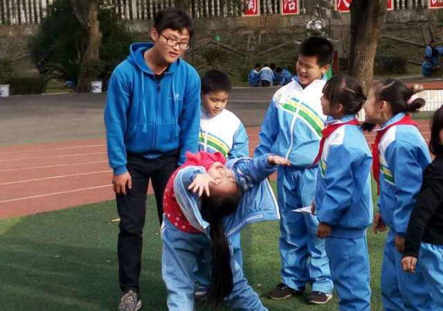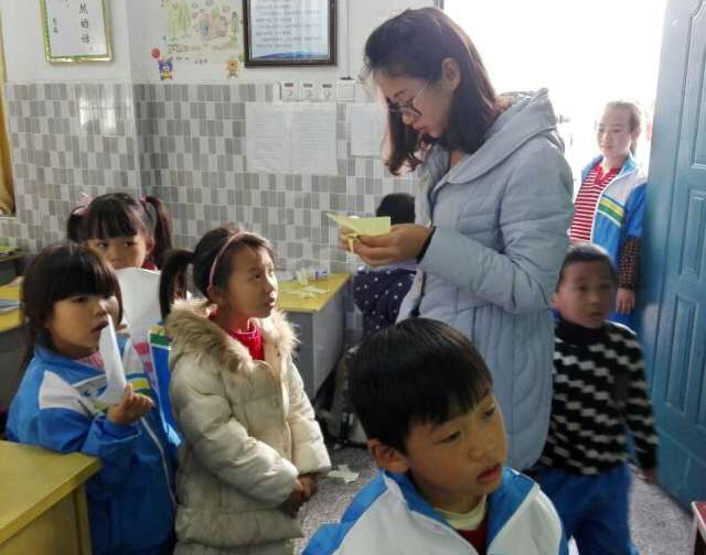 一入校园,便听到孩子们的活泼笑声,前来支教的青协成员们很快地融入到他们的游戏中,通过发糖果和玩游戏的活动,迅速拉近了彼此的心,寒风中流转的是灿烂的笑意。