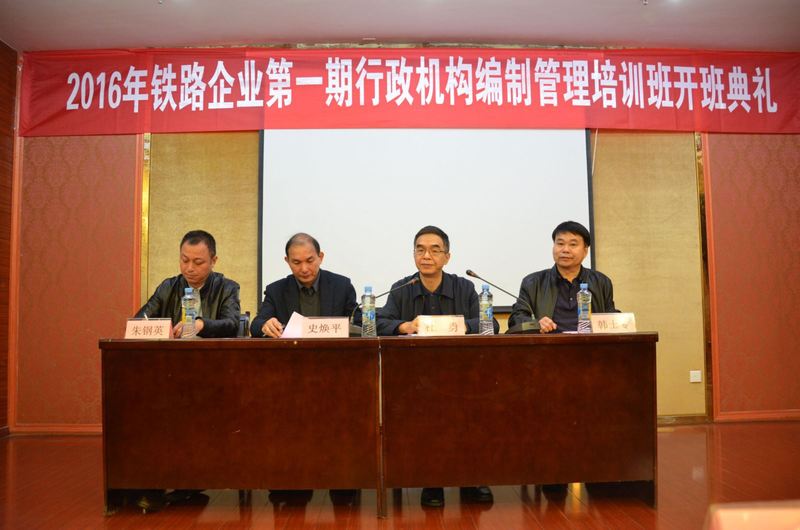 11月14日,2016年铁路企业第一期行政机构编制管理培训班开班典礼于南区专家楼顺利举行,yl7703永利集团副校长史焕平、铁路总公司劳动和卫生部副主任杜勇、yl7703永利集团常务副院长韩士专、yl7703永利集团院长助理兼办公室主任朱刚英参加了此次活动。