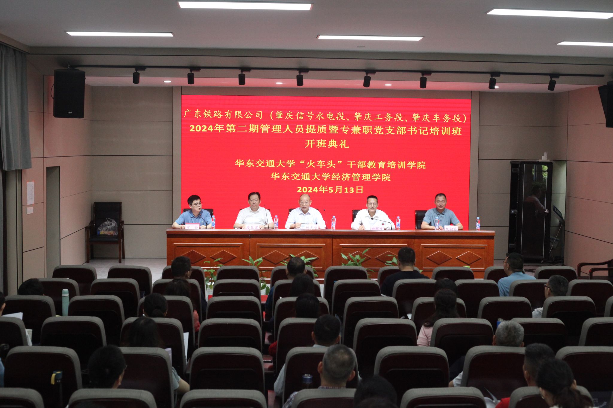 2024年5月13日,广东铁路有限公司、肇庆信号水电段、肇庆工务段、肇庆车务段2024年第二期管理人员提质暨专兼职党支部书记培训班开班典礼在经管学院104多功能报告厅顺利举行。广东铁路有限公司副总经理杨光荣,对外联络处、校友办公室主任段戈宏,yl7703永利集团党委书记余得生,yl7703永利集团管理系主任万金,yl7703永利集团培训班主任朱钢英出席。
