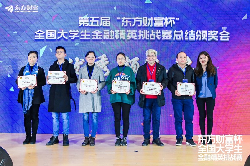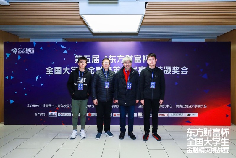 2019年11月28日下午,由共青团中央青年发展部主办,东方财富信息股份有限公司、全国学校共青团研究中心承办的第五届“东方财富杯”全国大学生金融精英挑战赛总结颁奖会在复旦大学举办。yl7703永利集团经管学院经济系教师、优秀领队邓小朱、优秀指导老师徐龙,一等奖获奖团队获得者、18金融专业学生范家成、余杨、董肖娜3名学生受邀参加颁奖典礼。