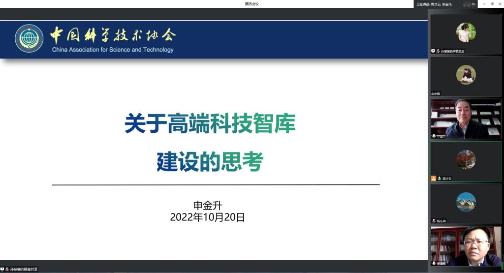 2022年10月20日下午,我院邀请中国科协创新战略研究院院长申金升教授在线上进行了关于高端科技智库建设的思考的学术讲座,讲座由副校长杨德敏教授主持,近百名yl7703永利集团师生参与了本次学术讲座。