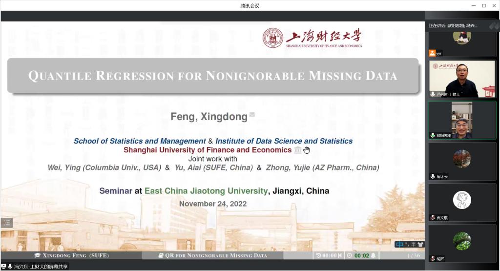2022年11月18日晚,我院邀请上海财经大学统计与管理学院院长冯兴东教授进行了主题为“Quantile Regression for Nonignorable Missing Data”的线上学术讲座,讲座由院长欧阳志刚教授主持,近百名yl7703永利集团师生参与了本次学术讲座。