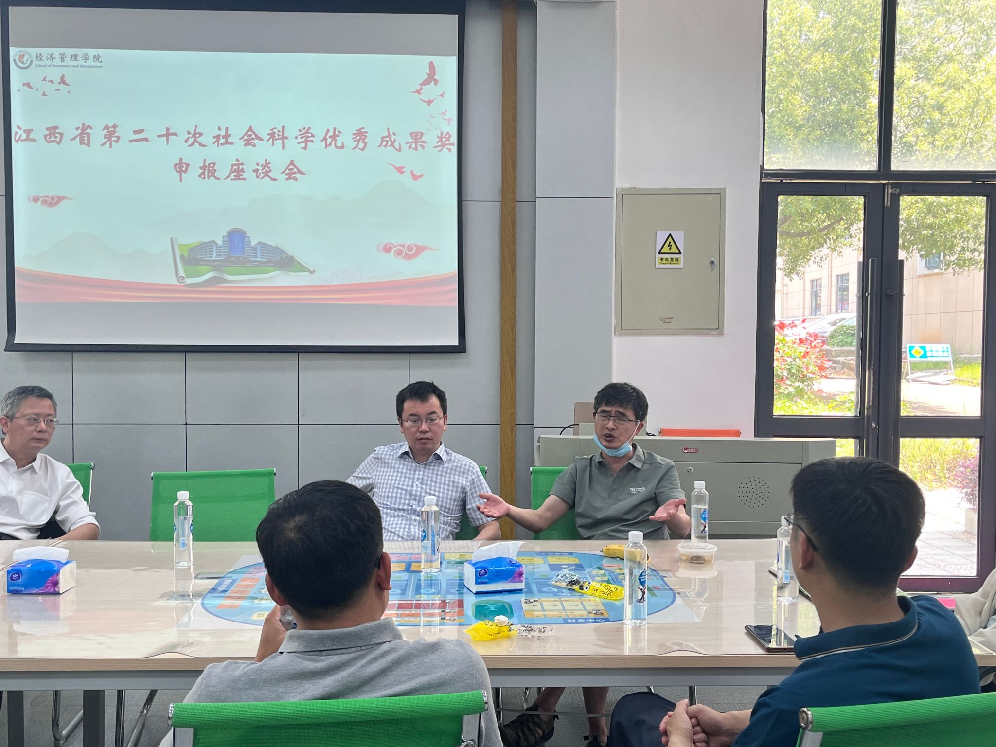 为顺利申报江西省第二十次社会科学优秀成果奖,我院于5月18日中午在大数据实验中心一楼会议室顺利开展本学期第四期学术午餐会。本次午餐会以“江西省第二十次社会科学优秀成果奖申报座谈会”为主题,邀请到科研处高丹卡副教授进行分享。会议由副院长周才云主持,参会人员为经管学院教师。