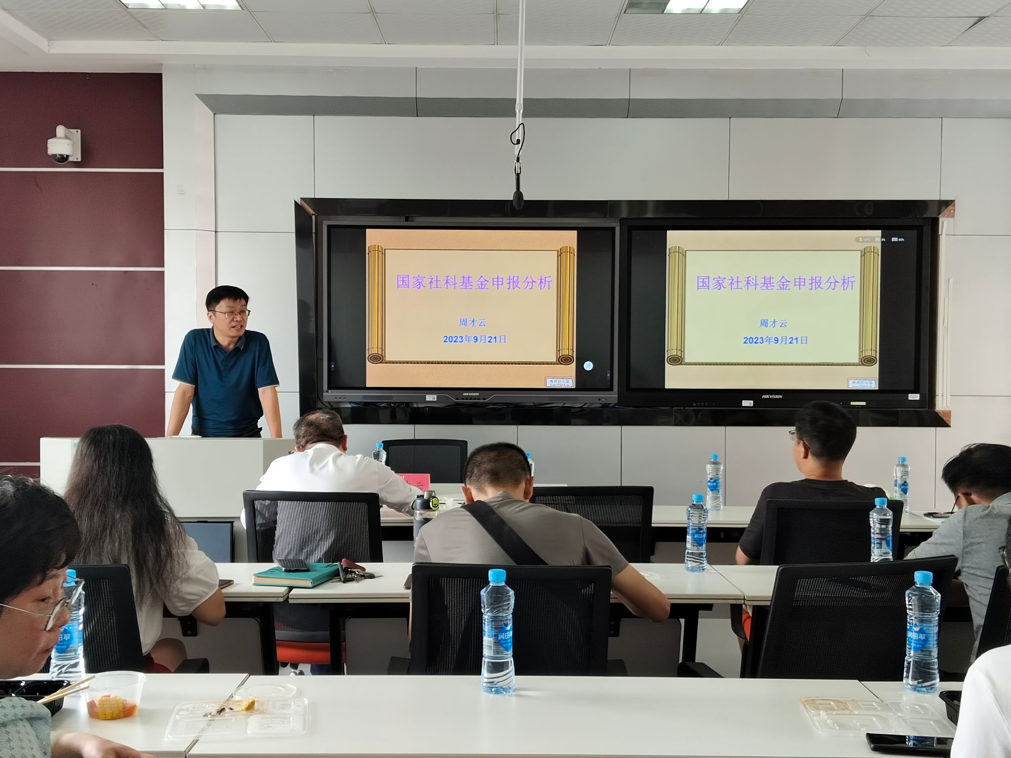 2023年9月21日中午,我院于31栋630教室顺利开展本学期第二期学术午餐会。本次午餐会以“国家社科基金申报分析”为主题,邀请到副院长周才云教授进行分享,学院30余名师生参与本次午餐会。
