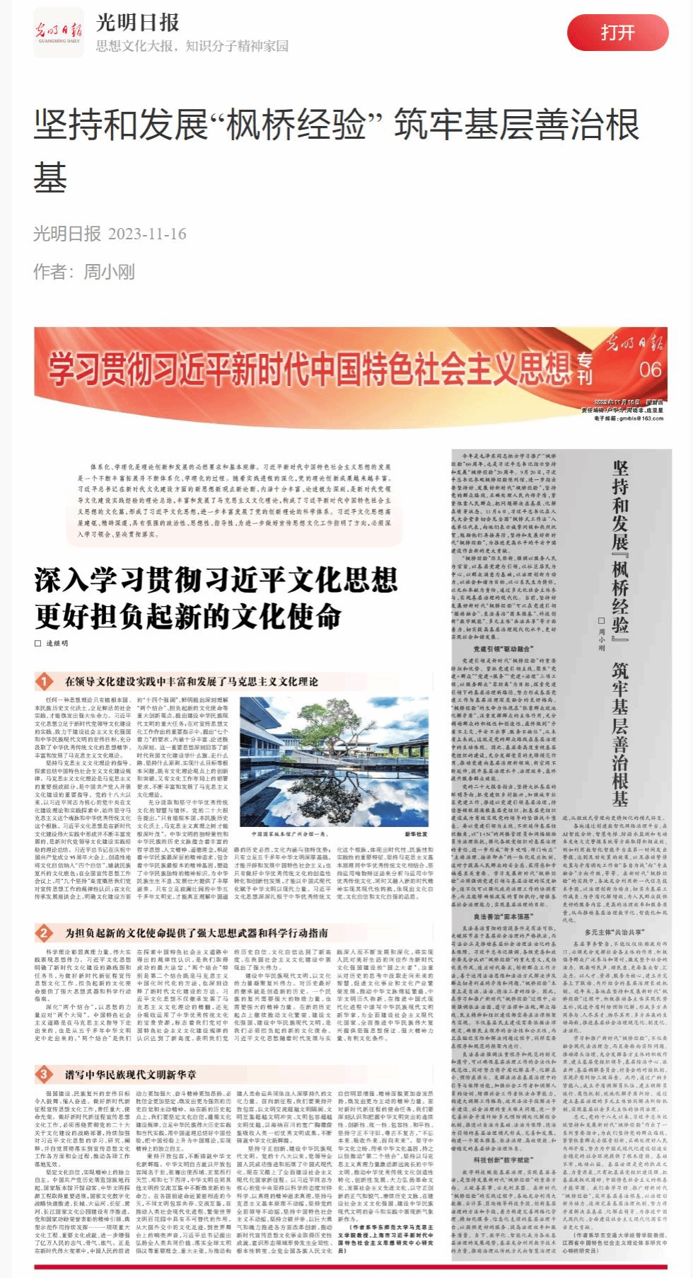 “枫桥经验” 筑牢基层善治根基》。