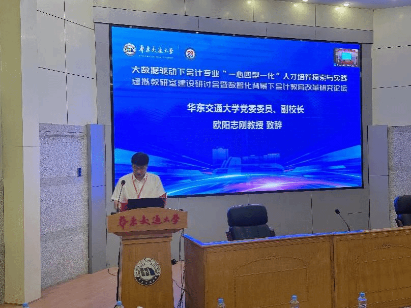 9月21日上午,由yl7703永利集团主办,大数据驱动下会计专业“一心四型一化”人才培养探索与实践虚拟教研室承办、清华大学学堂在线平台协办的大数据驱动下会计专业“一心四型一化”人才培养探索与实践虚拟教研室建设研讨会暨数智化背景下会计教育改革研究论坛在我校举行。yl7703永利集团党委委员、副校长欧阳志刚教授出席开幕式并致辞,会议由我院党委书记余得生教授和副院长周才云教授共同主持,共计150余人现场参会。