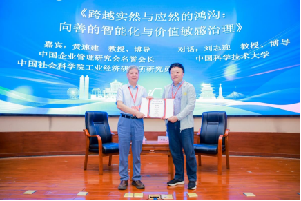 首先,中国企业管理研究会名誉会长、中国社会科学院工业经济研究所黄速建研究员以《跨越实然与应然的鸿沟:向善的智能化与价值敏感治理》为题,深入剖析智能化发展与价值治理的内在关系,系统阐述企业在智能化快速发展背景下,如何实现技术进步与价值导向的有机平衡。中国科学技术大学刘志迎教授与黄速建研究员展开对话,从多元视角解读这一前沿议题。