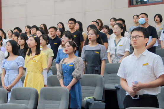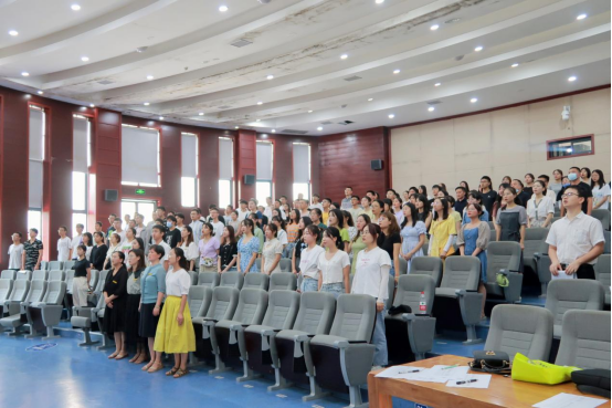 最后,与会人员全体起立、佩戴校徽,齐唱校歌。经管学院2021级硕士研究生开学典礼圆满结束。愿每一位新交大经管人,坚持理想、保持热爱,青春执笔、汗水为墨,书写人生的浓墨重彩,成为大写的时代新青年!