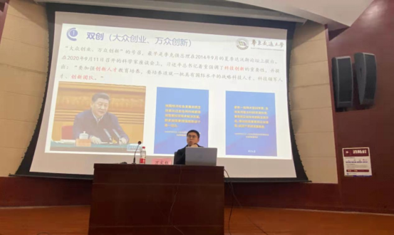10月30日下午2点半,我院特邀校团委创新创业教育中心万家红老师开展以“凝双创之魂,铺华交之路”为主题的创新创业入学教育讲座。院学工办副主任兼团委副书记程丽琴主持,全体21级新生参加。