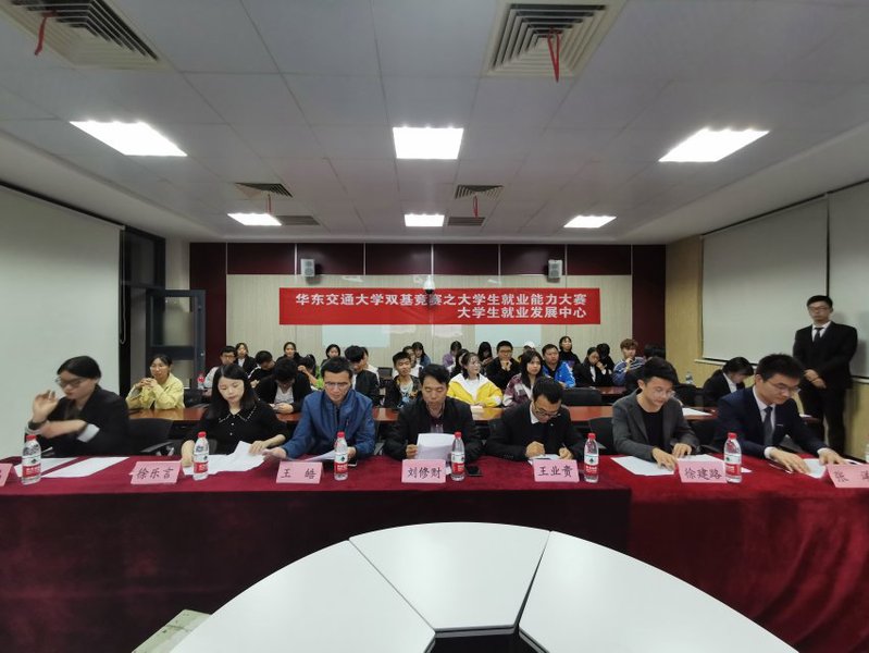 为给广大在校同学提供实用的求职经验,普及就业面试方面的知识,11月11日晚于教31栋举行了2019年yl7703永利集团双基竞赛之大学生就业能力大赛决赛。我院学工办主任兼团委书记刘修财、招生就业处就业科王业贵、我院就业指导老师王皓、初远定制总经理徐建路、江西邦正科技有限公司运营总监徐乐言、中公教育老师张晶以及链家地产人力资源师张洋作为评委出席本次大赛。