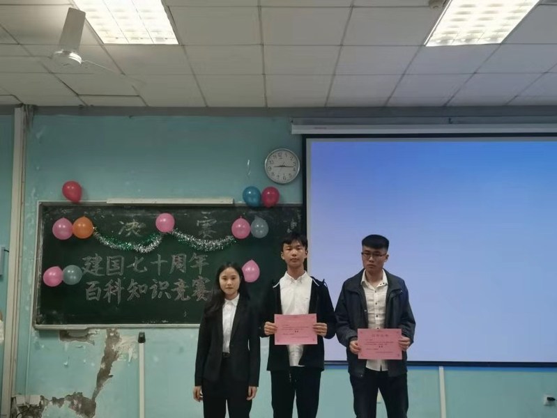 为响应“不忘初心、牢记使命”时代号召,回顾新中国七十年来发展历程,增强我院学生对祖国七十年来各方面发展的了解,我院学术部呈现了一场全新的知识盛宴——百科知识竞赛。11月2日,百科知识竞赛决赛于31栋举行。 本次决赛以中华人民共和国成立70周年为主题,考察学生对中华人民共和国成立以来我国取得丰硕成果的了解,内容涉及我国在政治、经济、科技等方面实施的重要方针政策以及取得的突破性成就。参赛的十二名选手需要经过两个环节角逐出最后的赢家。环节一为计时答题,每位参赛选手需在两分钟内完成自我介绍,在限定的100秒内回答出由评委提出的问题。各个选手充满信心,认真作答,对于评委的提问,给出一个又一个准确答案。高手之间的精彩较量让人连连赞叹,现场响起一阵阵响亮的掌声。环节二为即时记忆,参赛选手现场观看一段视频后,需要凭借速记能力在规定时间60秒内回答5个问题。整个过程,参赛选手需高度集中注意力,将自己眼睛所见、耳朵所听存储在脑海里,给出准确答案。整个过程,在座所有人与各位选手一起共同熟悉百科知识,更有猜歌名,你画我猜等小游戏,点燃现场的气氛。