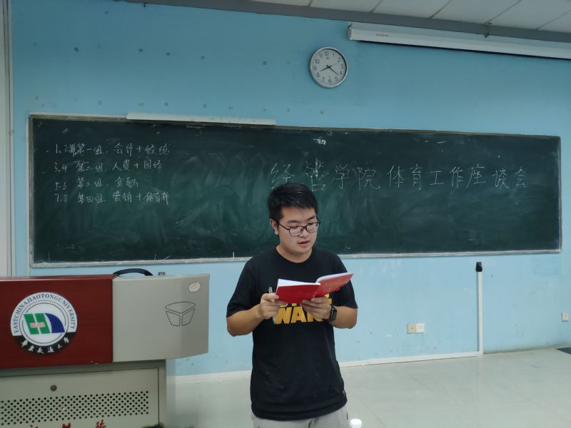 众所周知,年轻一代的体魄,意志和品质就是一个国家未来的竞争力。正值祖国华诞70周年,国力兴盛,新时代的青年们要珍惜这个时代,担负时代使命,努力成为德智体美劳全面发展的社会主义建设者和接班人,让青春在改革开放新时代的广阔天地中绽放。相信通过这次座谈会定能找出提高学生素质的可行方案,让经管学子们与运动为伍,塑造强健体魄,筑造美好青春!