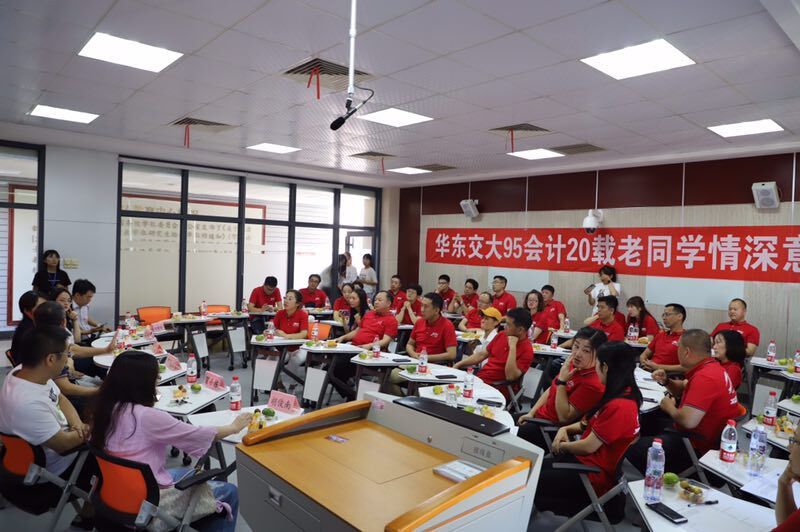 9月21日,经管学院95会计专业校友毕业二十周年返校聚会在我校北区举行。校友们在经管大楼着统一订制花椒服装开展了师生座谈会,出席本次座谈会的有我院党委书记胡桃元老师,校人事处长、时任95级会计辅导员林井萍老师,校友办王倩老师以及我院王芸、冒小栋、胡俊楠,刘修财等老师。