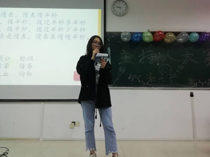 现场座无虚席,气氛热烈。比赛分为四个环节:两人组合展示;个人展示;物品联想;才艺展示。在个人展示的环节当中,同学们模拟了不同环境中的主持情景,有激情热烈的活动促销,有搞笑幽默的曾小贤直播间,还有风趣精彩的校园广播,更有庄重礼仪的婚礼现场。选手们都通过自己卓越的才能展现出不同环境中不同的主持风格,吸引了全场的注意力。在比赛的休息之余还组织了一两个妙趣横生的小游戏,充分调动了现场的气氛,使比赛严肃而又不失活泼,紧张而又不失轻松。