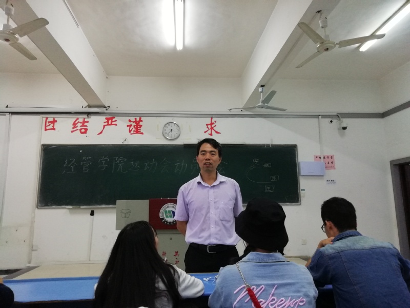 最后,经管学院学生会主席对运动会各项事宜进行了安排部署,包括比赛事项,注意事项,希望大家能够积极主动的承担后勤,为参赛的老师和同学热心服务。