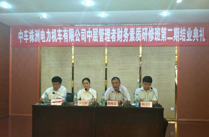 9月1日下午,中车株洲电力机车有限公司中层管理者财务素质研修班第二期结业典礼在南区专家楼召开。副校长黄稚龙、中车株洲电力机车有限公司审计与风险管理部部长李玉辉、校友办主任和对外联络处处长罗侃、经管学院院长韩士专、经管学院本次培训班班主任陶裕春、朱钢英应邀出席。