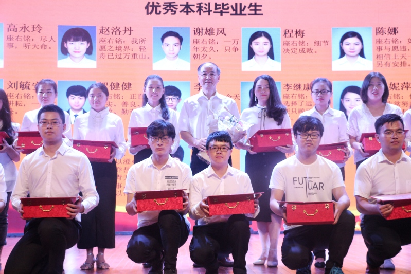 歌舞之后进行了杰出学生代表表彰大会,万明为经管学院优秀本科、优秀硕士毕业生颁奖,罗玉峰为本科及硕士“十大优秀大学生”颁奖。此为奖励,更是激励,希望优秀的同学们发挥榜样的力量,再接再厉,再创辉煌。
