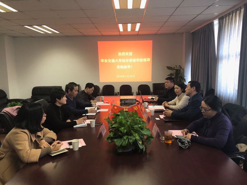 2018年1月10日—11日,为进一步加强学分制背景下学生思想政治教育工作,尤其是学生寝室文化建设、创新创业教育等重点工作,华东交大经管学院党委书记胡桃元、副书记田玉兰一行四人赴浙江大学经济学院、浙江工商大学管理学院、浙江理工大学经管学院等高校进行专题调研。