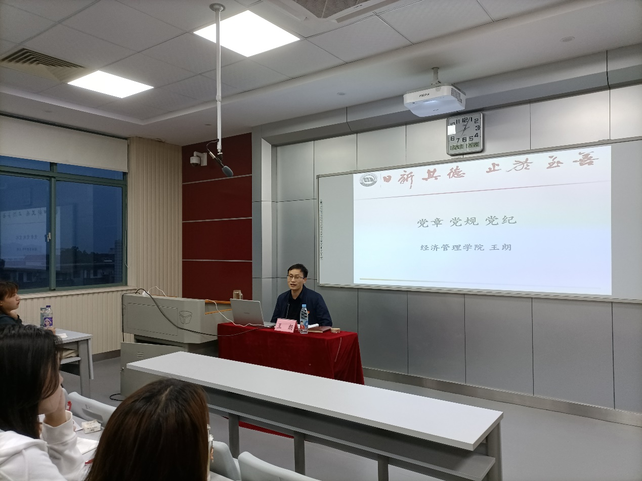 2021年5月18日晚,yl7703永利集团第51期业余党校第五讲在31栋634教室开课。本次党课由我院党委书记王朗为同学们讲授主题为“学习党章、党规、党纪”的党课。