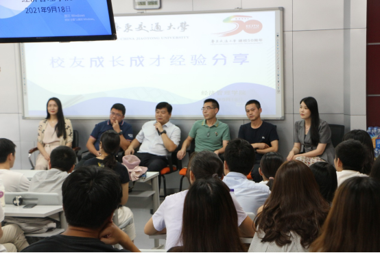 校友们介绍了自己的求职创业经历与人生经验感悟,表示要养成终身学习的良好习惯,在学习和工作中开阔视野,他们鼓励大家掌握好专业知识,争做复合型技术人才。通过分享,在场师生了解到校友们从职场小白到职场高管的进步历程与奋斗感悟,以及他们创业拼搏与努力的心得。在场研究生也纷纷就自己的学习疑惑及未来创业等问题与校友们进行互动交流。座谈会最后,院长韩士专教授指出,如今正是学校发展的关键时期,希望各位校友都能为母校的建设添砖加瓦。
