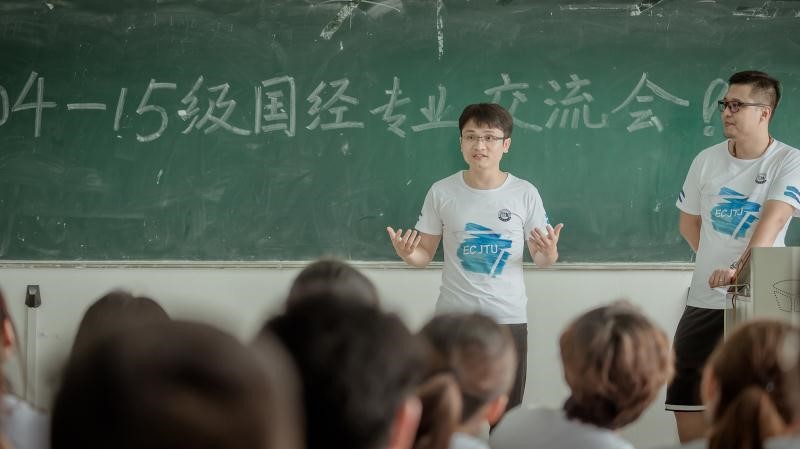在王皓老师做完精彩的开场白之后,王曦师兄和蒋旖旎班长分别作为04及15级国经的代表共同来主持此次交流会。本次交流会分为畅谈人生感想、大学爱情观之我见、深造考研心德感悟及互动分享这四个部分。