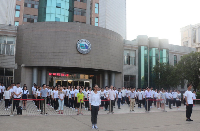 9月27日,经管学院大一新生在南区教8栋广场参加开学以来第一次升旗仪式。经管学院党委副书记曾友田、学工办主任兼团委书记刘修财出席本次升旗仪式。