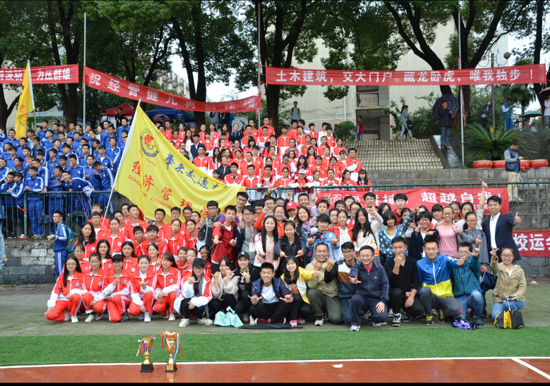 经管学院在风雨中克服恶劣的天气,坚持完成三天的赛程。校团委副书记张剑锋宣布校体育文化团体总分排名,经管学院总分以91分排名全校第六,在第34届田径运动会体育道德风尚评比结果中经管学院荣获第五名。校长罗玉峰为经管学院颁发第34届田径运动团体奖田径团体奖杯。