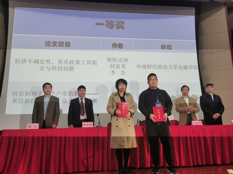 随后,中国技术经济论坛秘书长、中国社会科学院数量经济与技术经济研究所副研究员朱承亮宣读优秀论文获奖名单,我院副院长、教授周才云宣读优秀志愿者名单。本次评审共有17篇优秀论文获奖,一等奖2篇,二等奖6篇,三等奖9篇。其中,我院副院长欧阳志刚参与研究的《经济不确定性、货币政策工具组合与科技创新》获得一等奖,我院院长韩士专参与研究的《The SOE Channel of Monetary PolicyTransmission: Evidence from China’S Rescue Plan in 2008》获得二等奖。