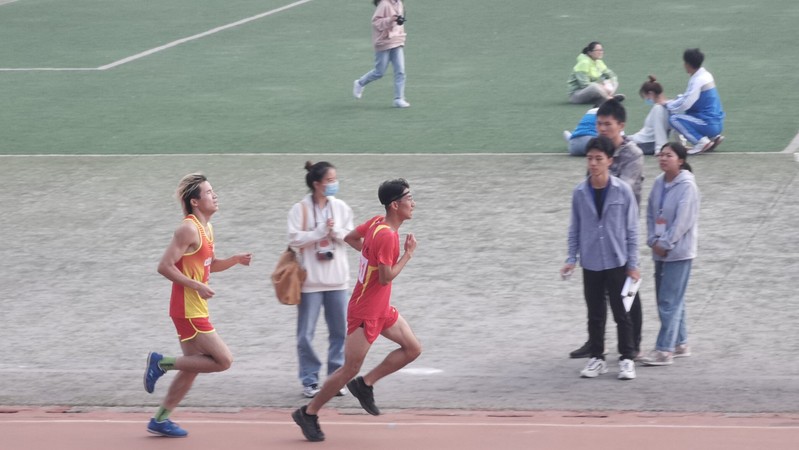 赛道上的辉煌是背后无数的汗水铺筑的,在赛前的无数个日子里,他们咬牙坚持,日日训练,只为提高那零点几秒。在赛场上,他们积极热身,让自己提前进入备战状态。枪声一响,他们迈着稳健的步伐向前冲去。5000米的赛道很漫长,但他放平心态,不骄不躁,稳住自己的节奏,调整呼吸,保存体力,像一只蛰伏的豹子等待着最后的冲刺。汗水划过那坚毅的脸庞,在最后几圈之际,体力渐渐有些不支,但他们咬牙坚持,依旧奋力奔跑。他们用自己的行动诠释着运动健儿不怕苦不怕累,坚持不懈追寻梦想的精神。终点近在咫尺,啦啦队大声呼喊着口号为他加油鼓劲,他们拼尽全力冲向终点,迎接属于他们的荣誉。成功总会格外眷顾那些努力和奋斗的人,付出才会有收获,拼搏才是青春的常态。