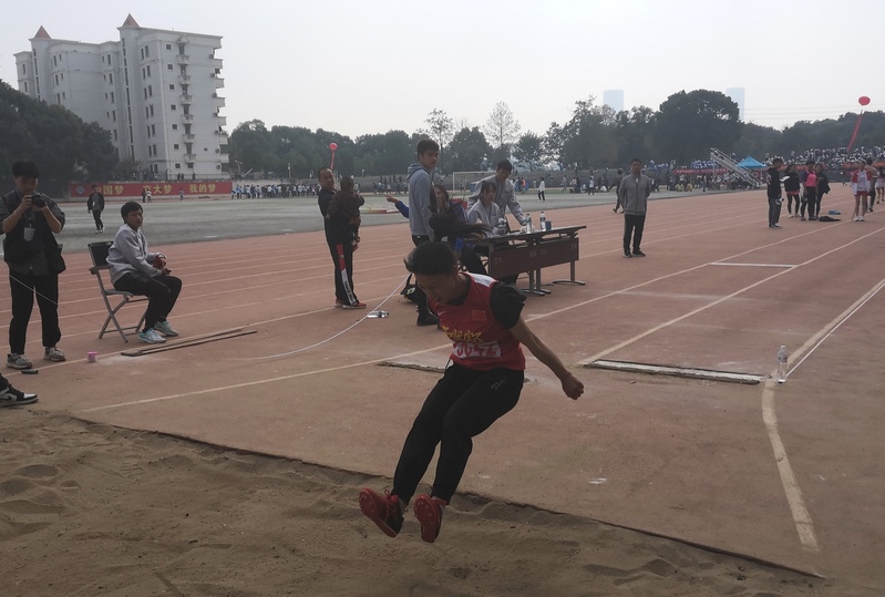 10月29日上午,我院廖俐、韦柳林在跳远项目分别以 3.85 、3.84米的优异成绩中在校运动会上荣获第五、第六名。