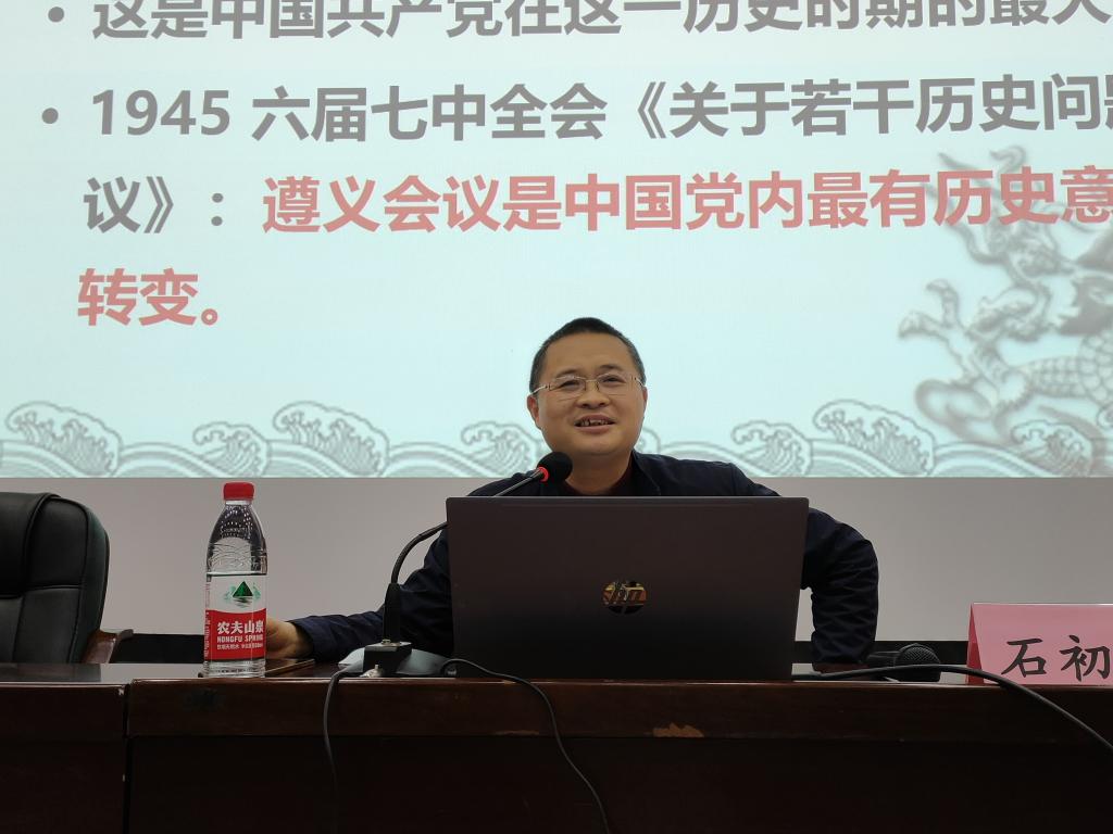 4月8日,根据学院党史学习教育计划安排,我院特邀yl7703永利集团党史宣讲团成员、孔目湖书院院长、图书馆馆长石初军老师为全院师生党员讲授“百年党史看‘两个维护’”党史学习教育专题讲座。院党委书记王朗主持。