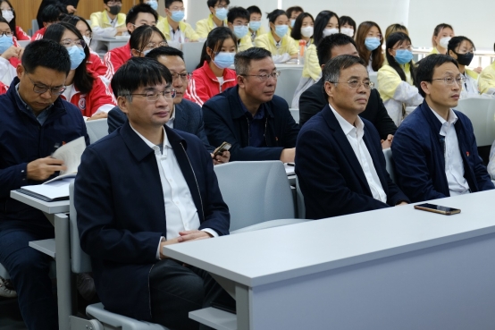 在互动环节,针对学生提出“如何助力家乡发展”的问题,杨德敏首先肯定了同学们对家乡的热爱,并希望同学们努力学习专业技能,发挥专业优势,助推家乡产业振兴与经济发展。杨德敏表示,党的二十大报告深情寄语青年,充分展现了以习近平同志为核心的党中央对当代青年的高度重视、充分信任和殷切希望。青年强,则国家强。广大青年要坚定不移听党话、跟党走,怀抱梦想又脚踏实地,敢想敢为又善作善成,立志做有理想、敢担当、能吃苦、肯奋斗的新时代好青年,让青春在全面建设社会主义现代化国家的火热实践中绽放绚丽之花!