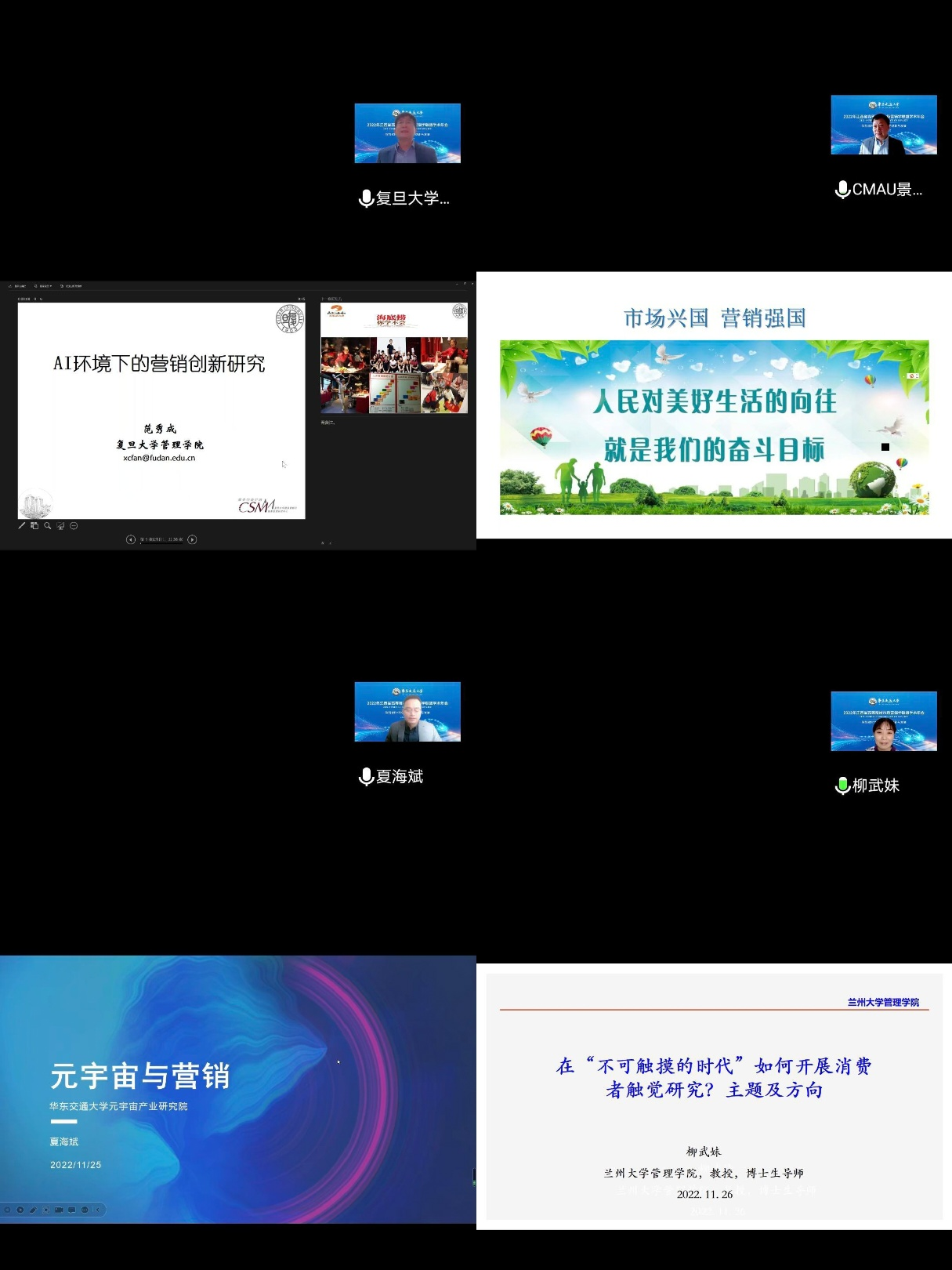 上午,华东理工大学景奉杰教授以幽默生动的语言发表了主题为“营销教育创新与产教融合平台建设”的演讲;复旦大学范秀成教授就“AI环境下的营销创新研究”做了分享;兰州大学柳武妹教授就“消费者产品触觉研究的主题”做主题报告;yl7703永利集团元宇宙产业研究院执行院长夏海斌副教授做以“元宇宙与营销”为主题的报告。