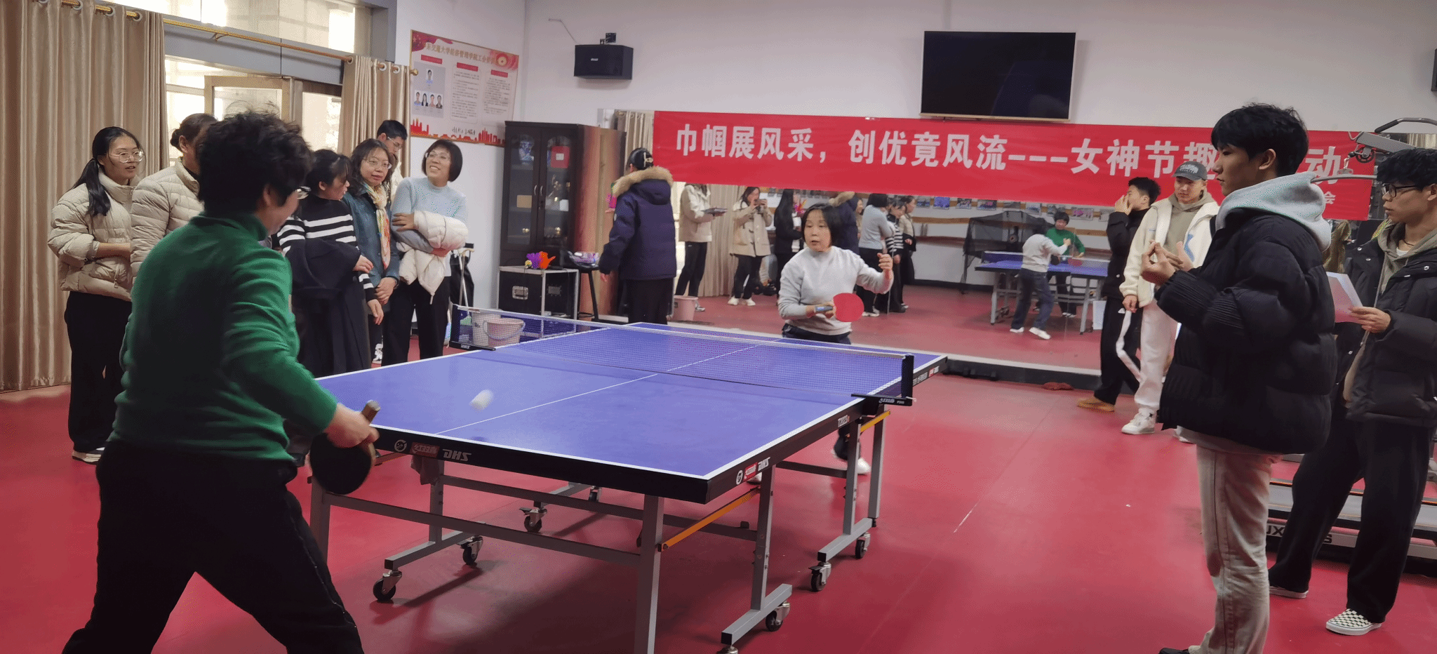 趣味活动包含踢毽子和乒乓球两项,活动在欢声谈笑中拉开序幕。大步向前,提腿将毽子踢向空中,优美转身,再次将毽子踢起,场地里教职工们身姿矫健,动作优雅,展现了别样的魅力。与此同时,乒乓球比赛也如火如荼地进行,三人成组,轮番上场,虽然现场大多数老师们并没有学习过乒乓球,略显僵硬,但在你来我往的过程中也体会到了乒乓球这项运动的魅力。